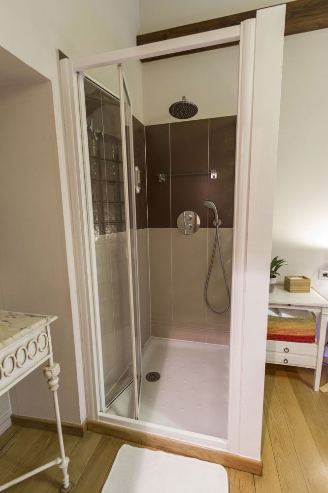 Esta habitación superior no es la más grande, tiene abierto a la habitación la ducha y el lavabo, con el inodoro cerrado. Su fuerte… La preciosa galería con vistas al río. Es una de mis preferidas decorada con un estilo muy colonial-indiano, nos hace viajar a otras tierras.