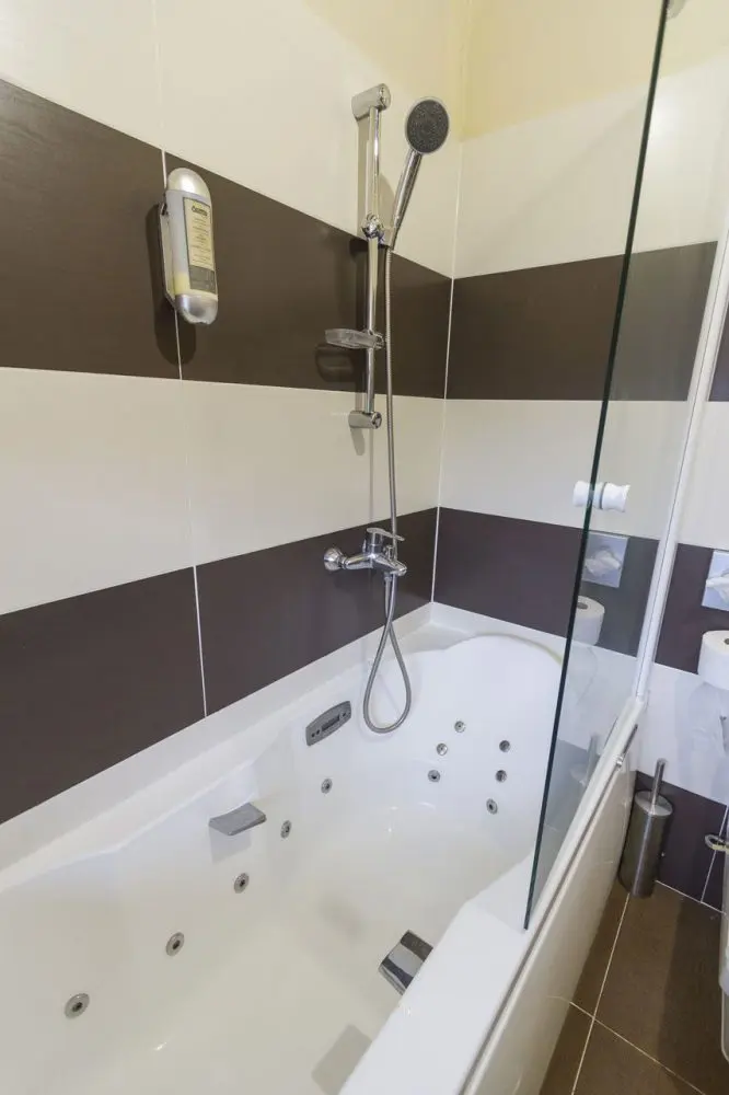 Su cuarto de baño tiene como dijimos antes vistas y luz natural, bañera de hidromasaje, con tratamiento de ozono y luminoterapia .