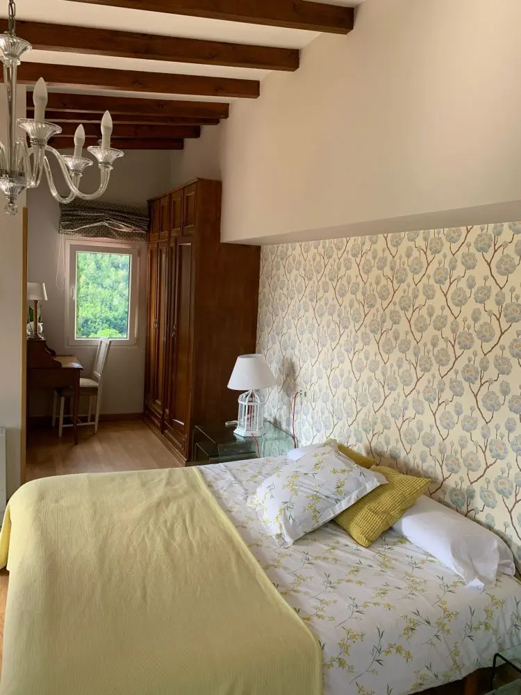 La cama son dos unidas de 90x200cm y unida mediante sabana bajera ajustable. solo las hacemos separadas en caso de que nos lo soliciten. su cabecera da al norte lo que mejora la calidad del sueño.