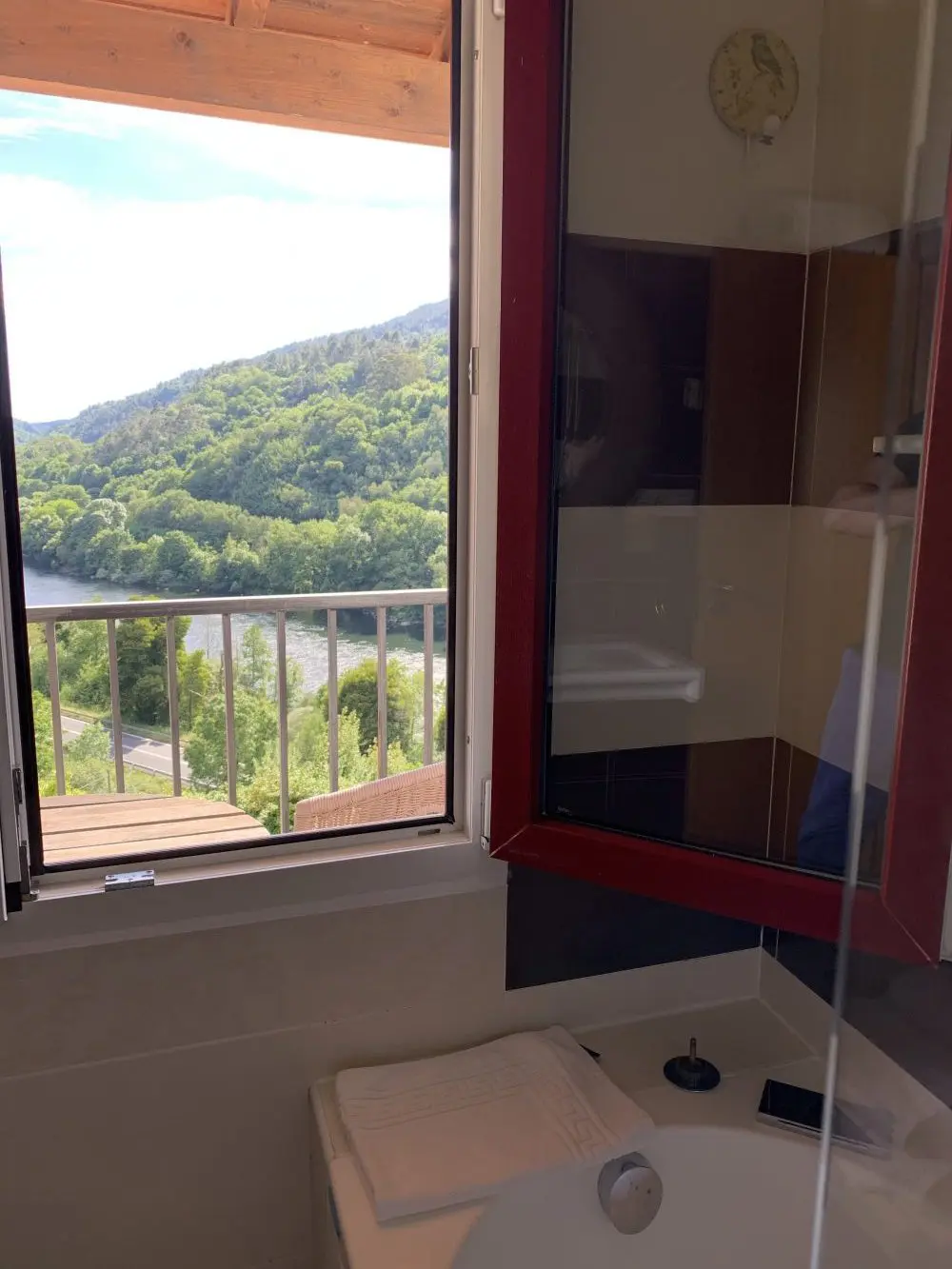 Dispone de balcón privado con vistas sobre el río y tiene tumbonas y mesa con sillas.